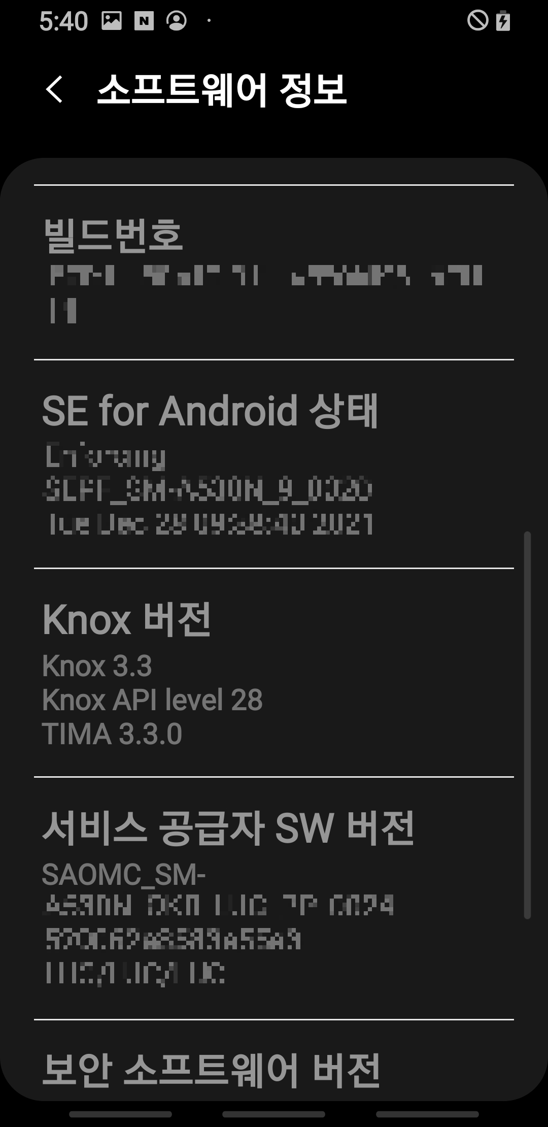 설정 - 휴대전화 정보