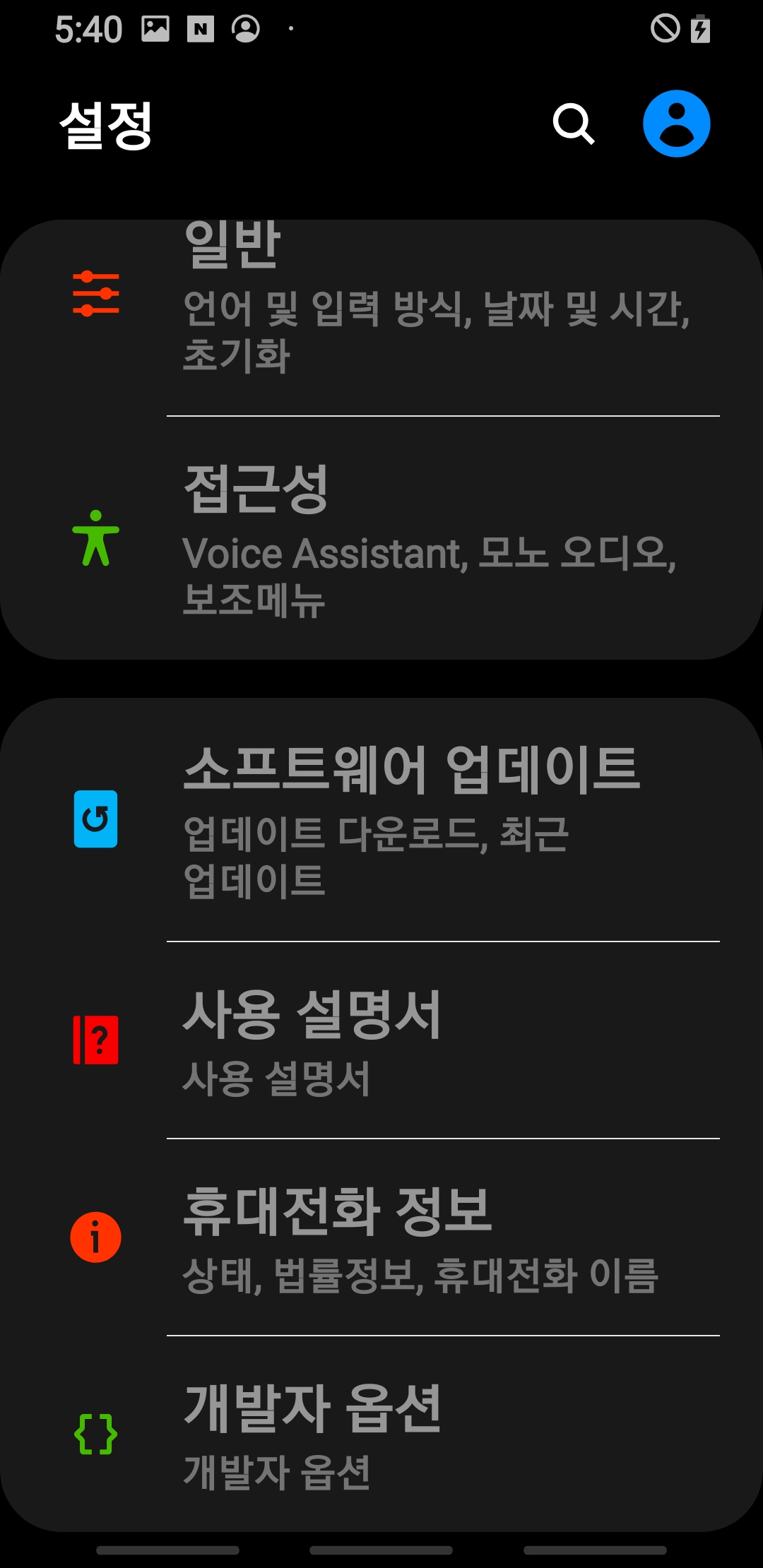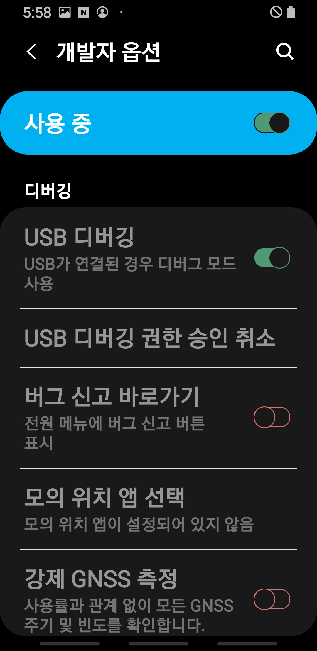 설정으로 돌아가보면 맨 아래에 개발자 옵션이 추가된것을 볼수 있다.