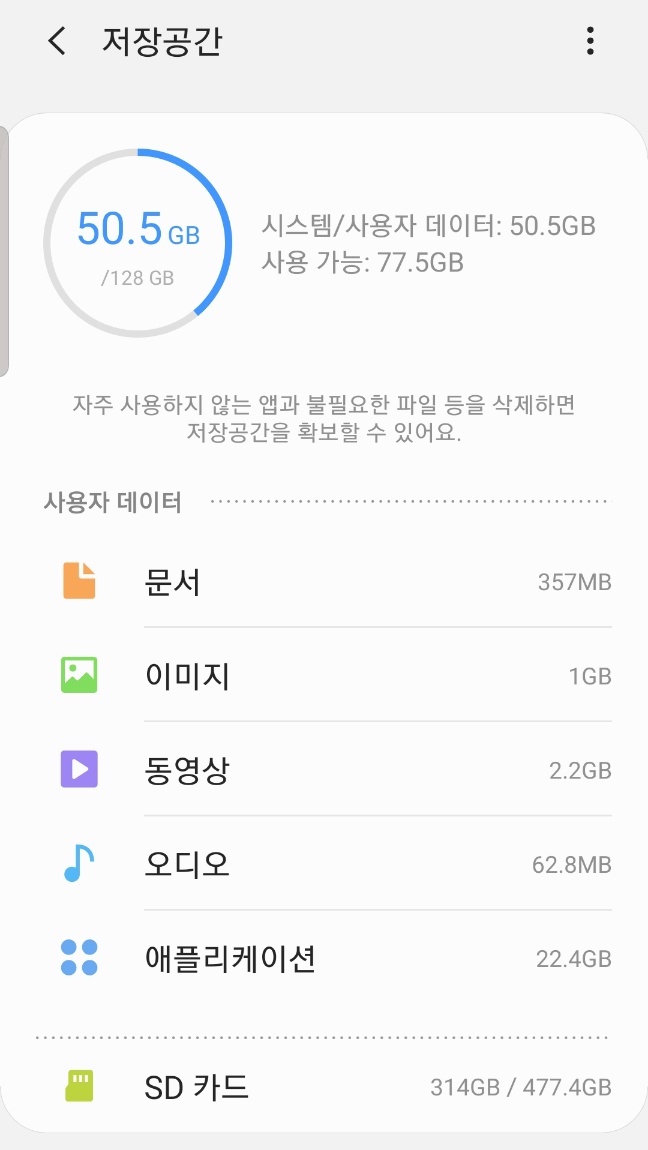 128GB에 데이터가 꽉 찼던 내장메모리가 여유가 많이 생겨