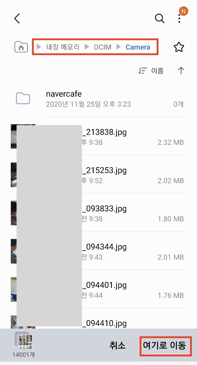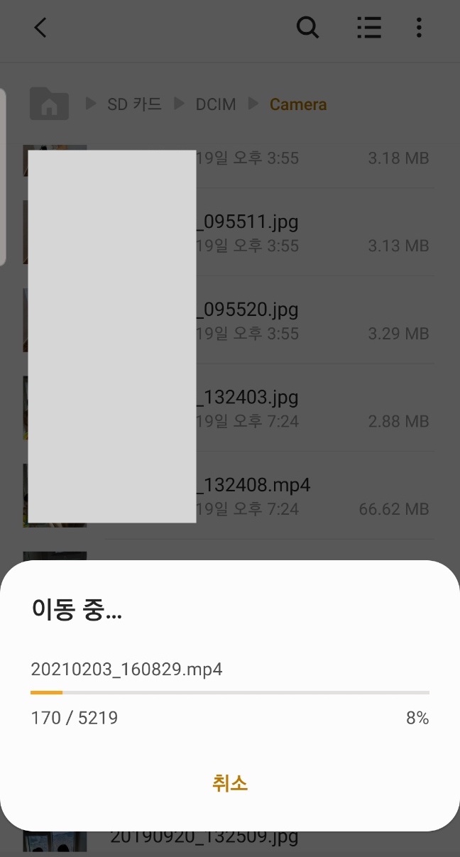내장메모리에 저장된 사진과 동영상도 새로운 512GB SD 카드로 이동합니다.