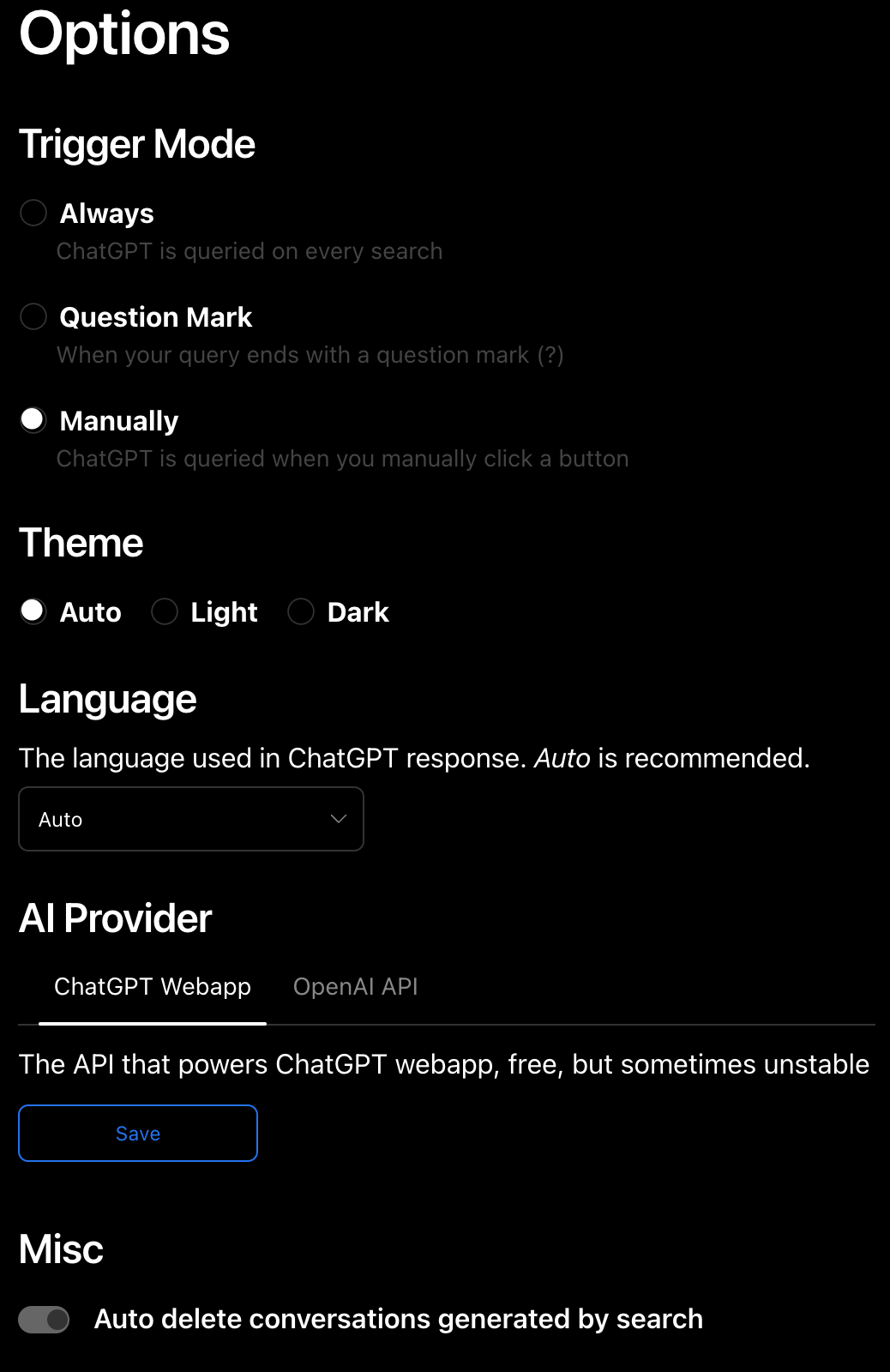 Auto delete conversations generated by search: 검색할 때마다 ChatGPT 내용 자동 삭제