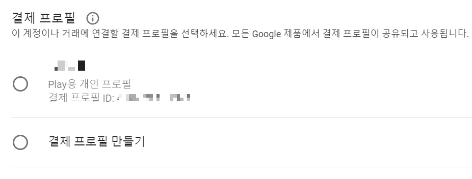 구글 플레이용 개인 프로필이 이미 있어서 해당 프로필 선택