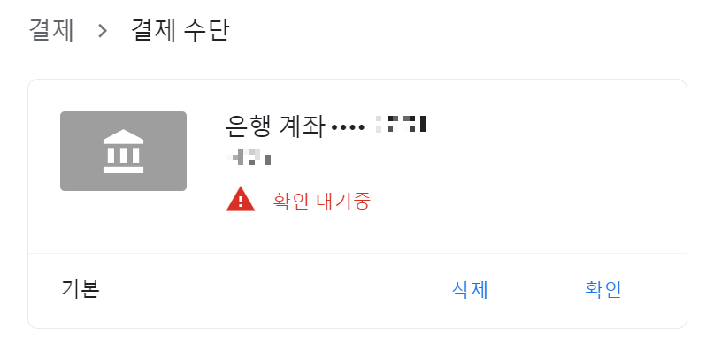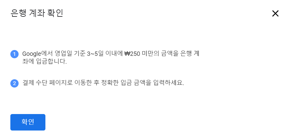 은행 계좌를 추가하면 3일이내로 구글에서 250원 이내로 해당 계좌로 입금한다.
