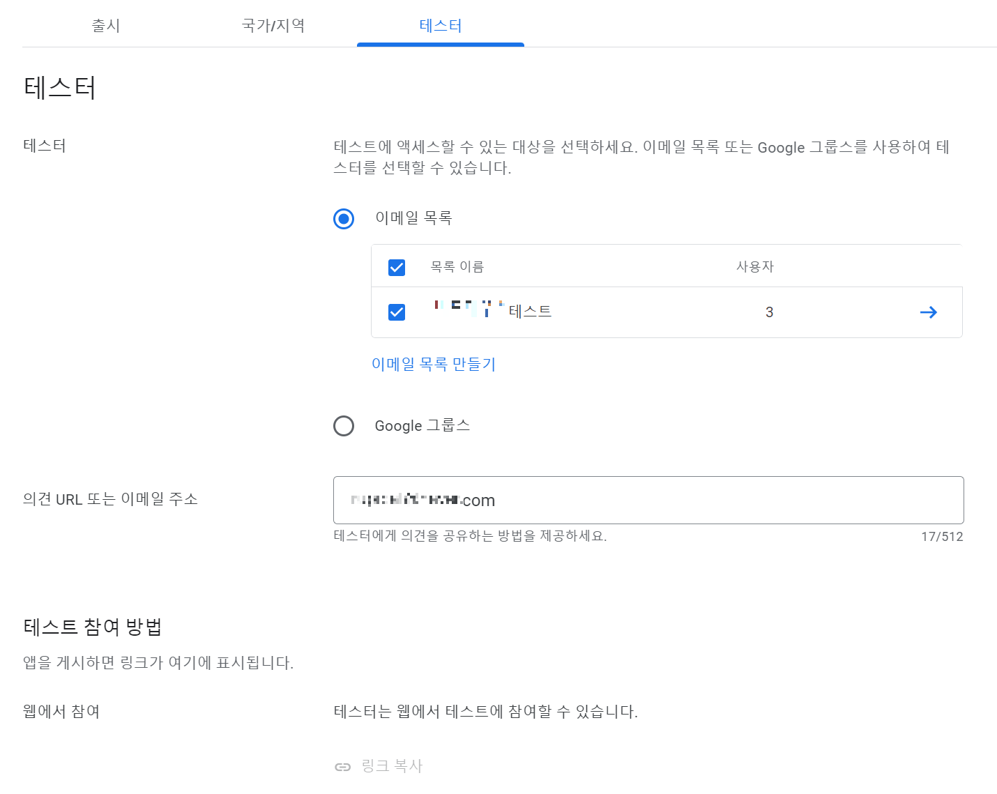 테스터 등록은 구글 계정 메일주소만 가능한듯