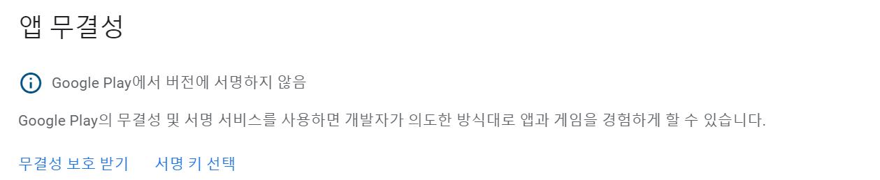 서명 키는 유니티 앱에서 생성하고 적용해 두었지만,