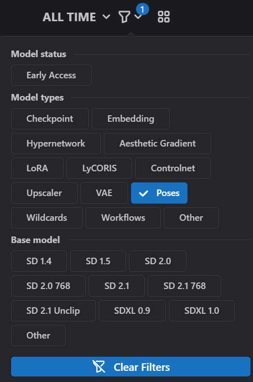 접속 후 오른쪽 상단 아래 필터 버튼 클릭 - Poses 선택