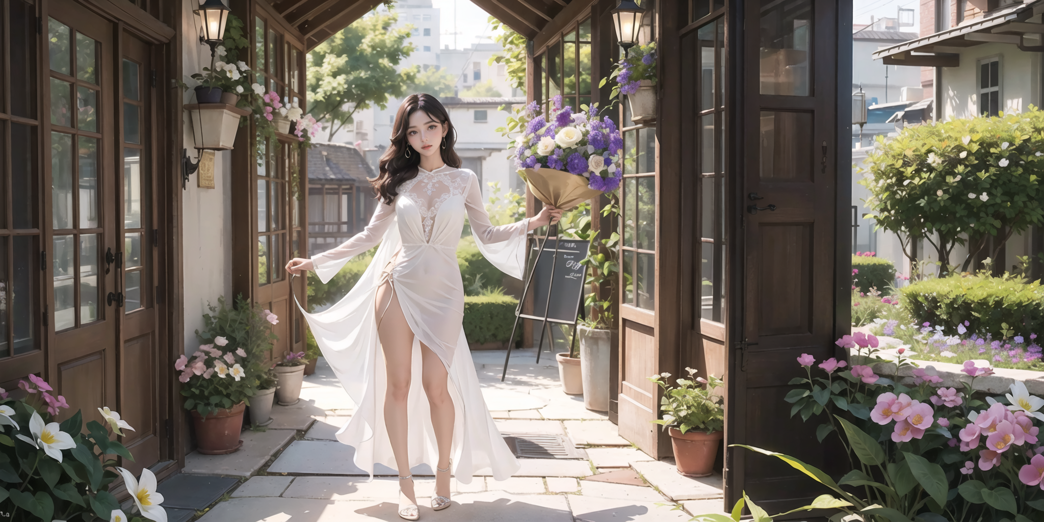 promft-프롬프트만을 사용하여 넓은 배경(와이트샷, 광각)을 생성할수도 있으나