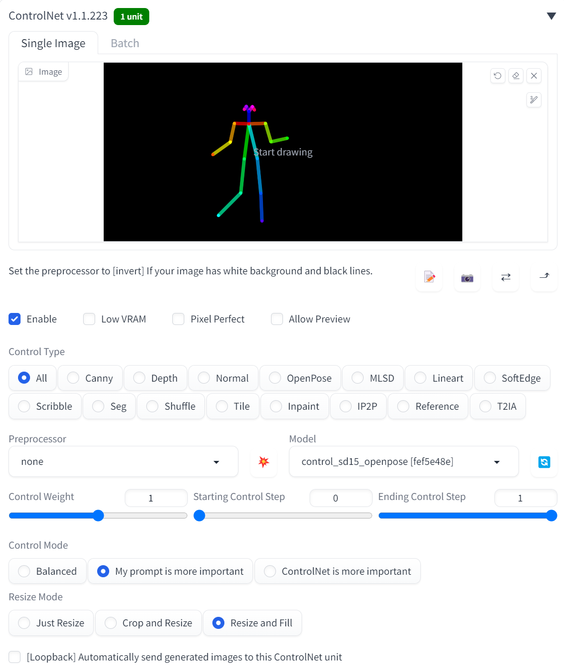 Preprocessor: none, Model: openpose,