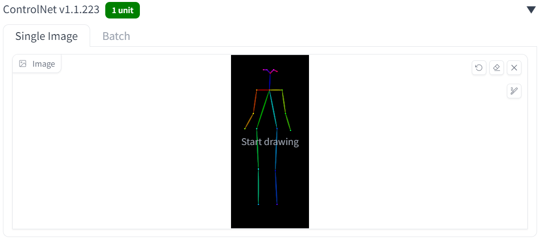 기존에 존재하는 뼈대 이미지를 컨트롤넷 컴포넌트에 불러온다.
