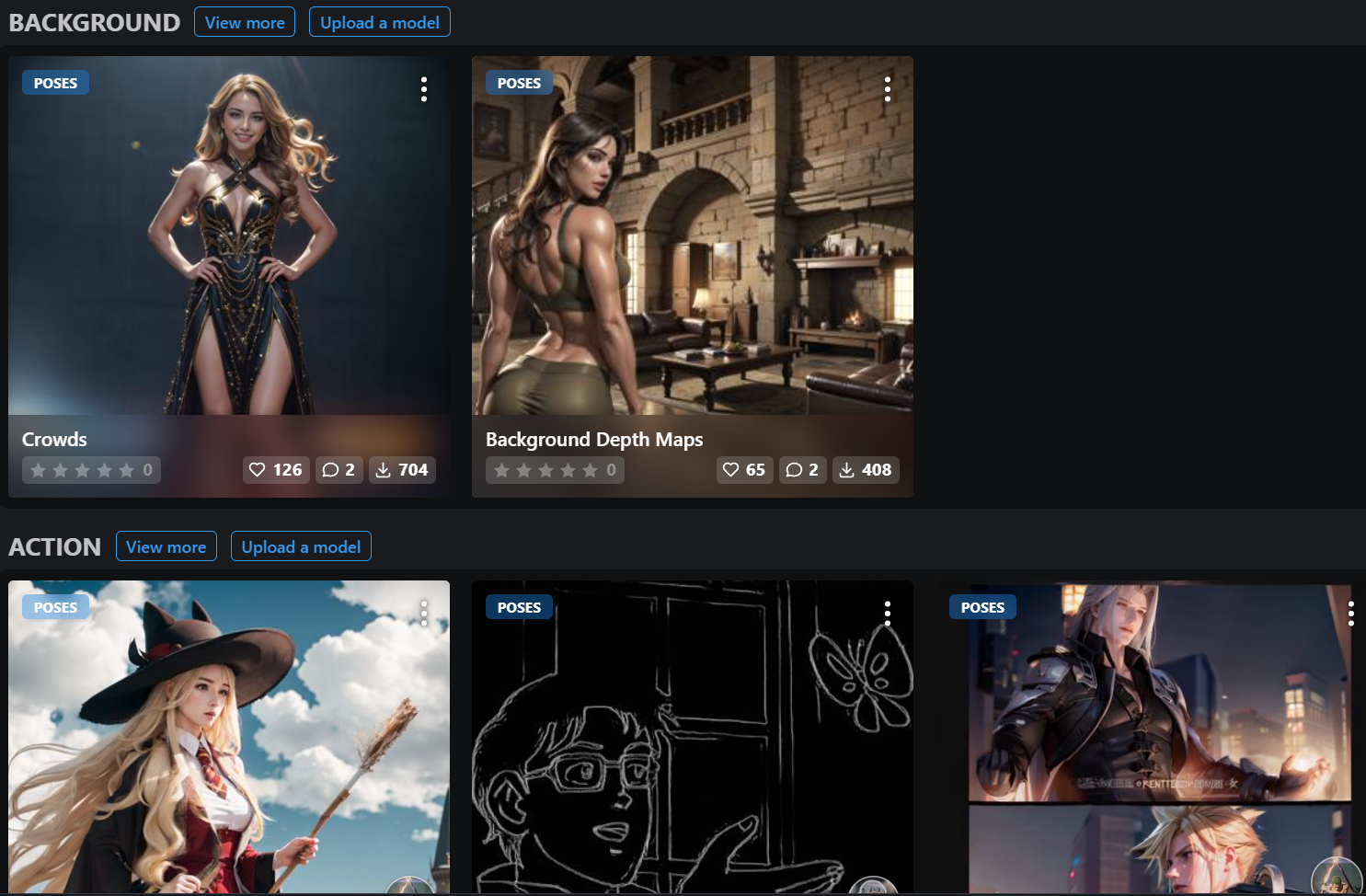 다양한 pose 뼈대 이미지들은 civitai 사이트에서 다운 받을 수 있다.