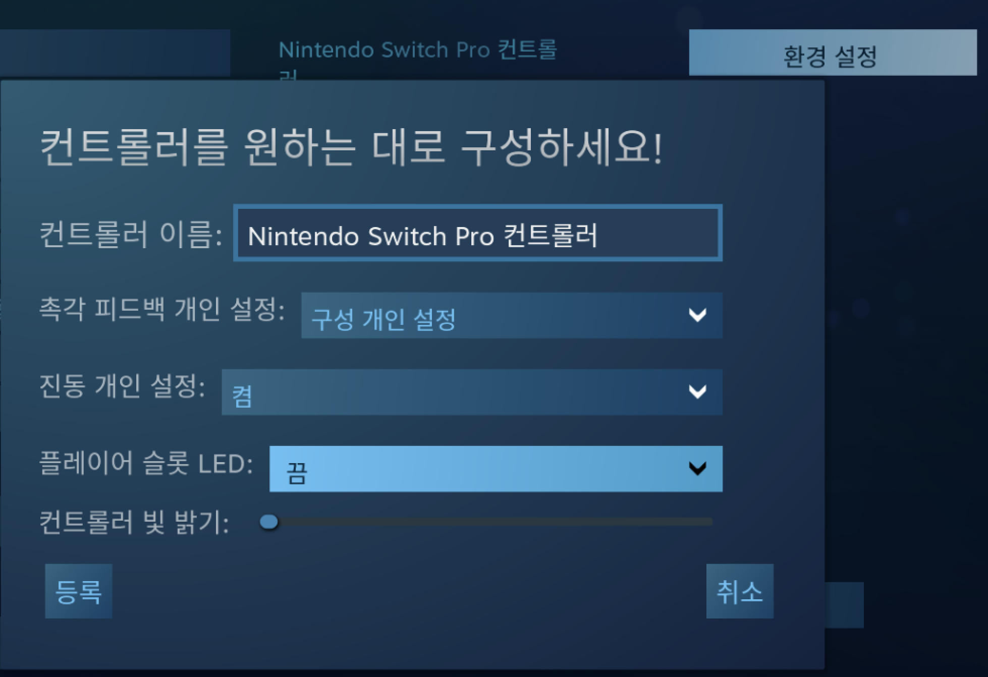 닌텐도 스위치 프로 컨트롤러를 스팀 게임에 사용하기 위해 스팀에 컨트롤러를 등록해주고 나서부터 컨트롤러 홈 버튼의 LED가 항상 켜진 상태입니다. 시간이 지나면 꺼지겠지 했는데 하루 종일 켜져 있네요.