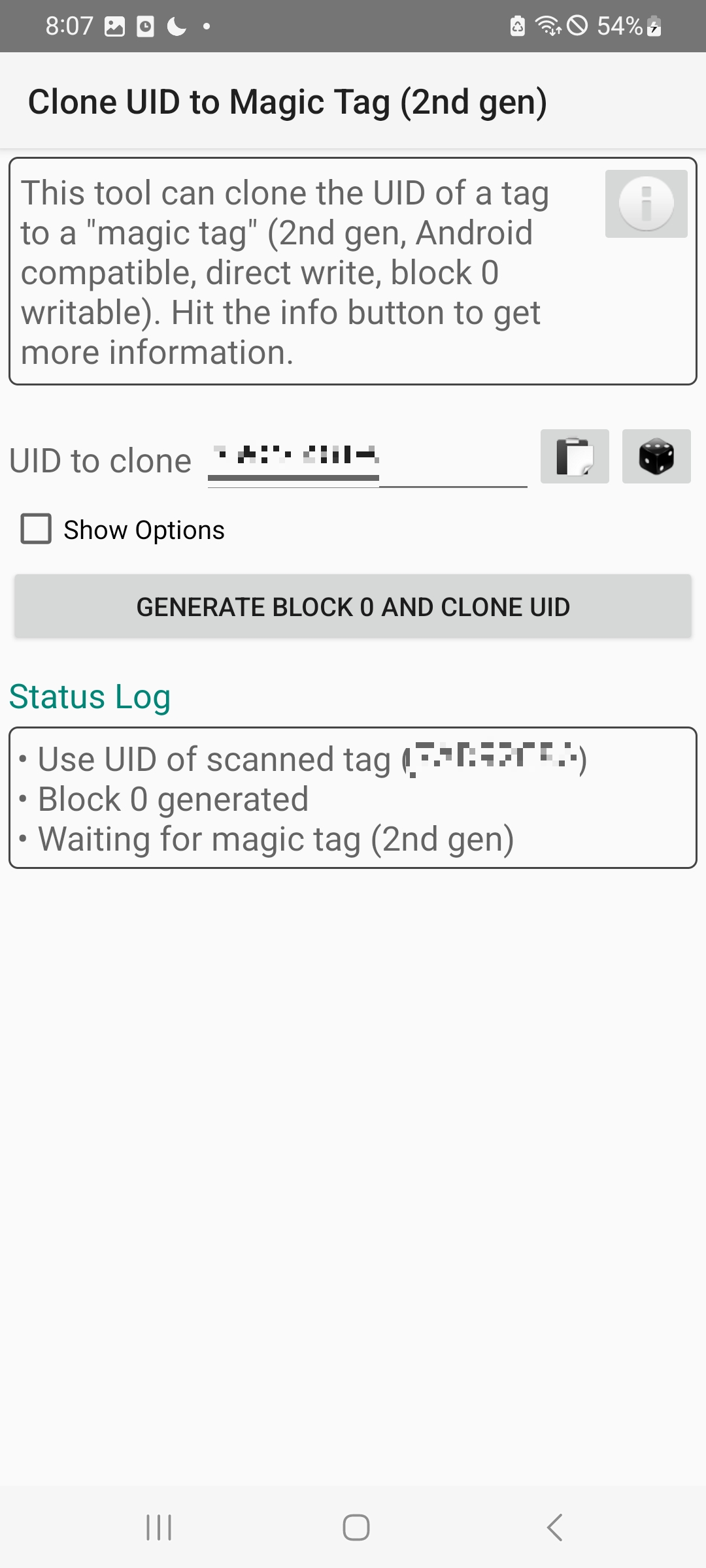 Clone UID - OPEN THE CLONE UID TOOL - GENERATE BLOCK 0 AND CLONE UID를 차례로 눌러준다.