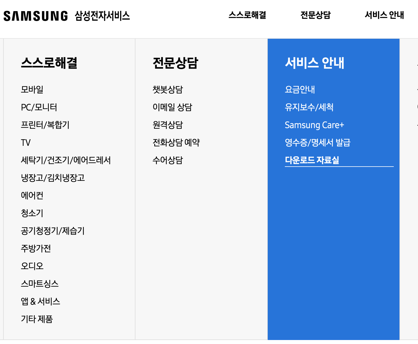 삼성전자 서비스 사이트의 다운로드 자료실에서