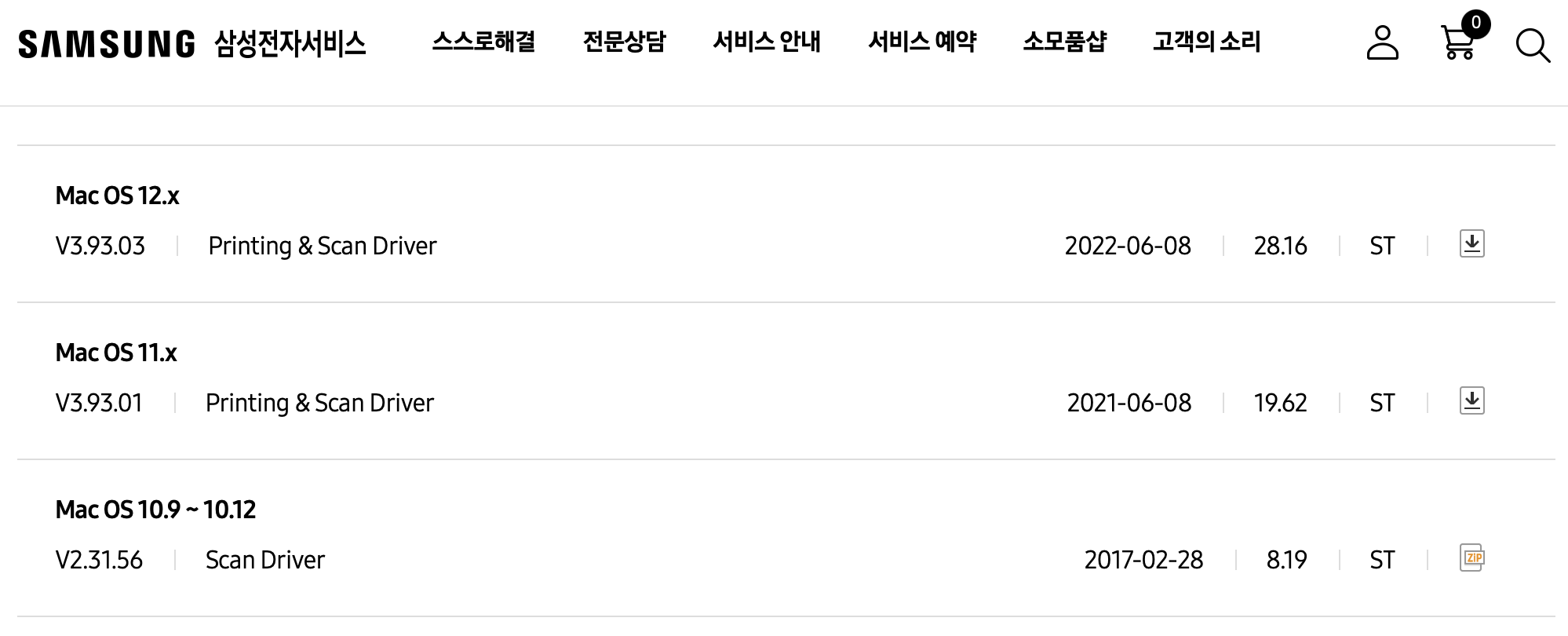 드라이버의 날짜를 보고 가장 최근에 올라온 맥용 프린터 드라이버 버전을 선택합니다.