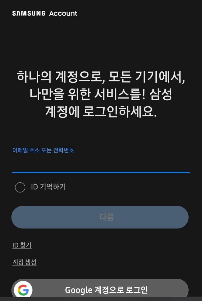 초대 링크를 웹브라우저에서 클릭하고 삼성 계정에 로그인한다.
