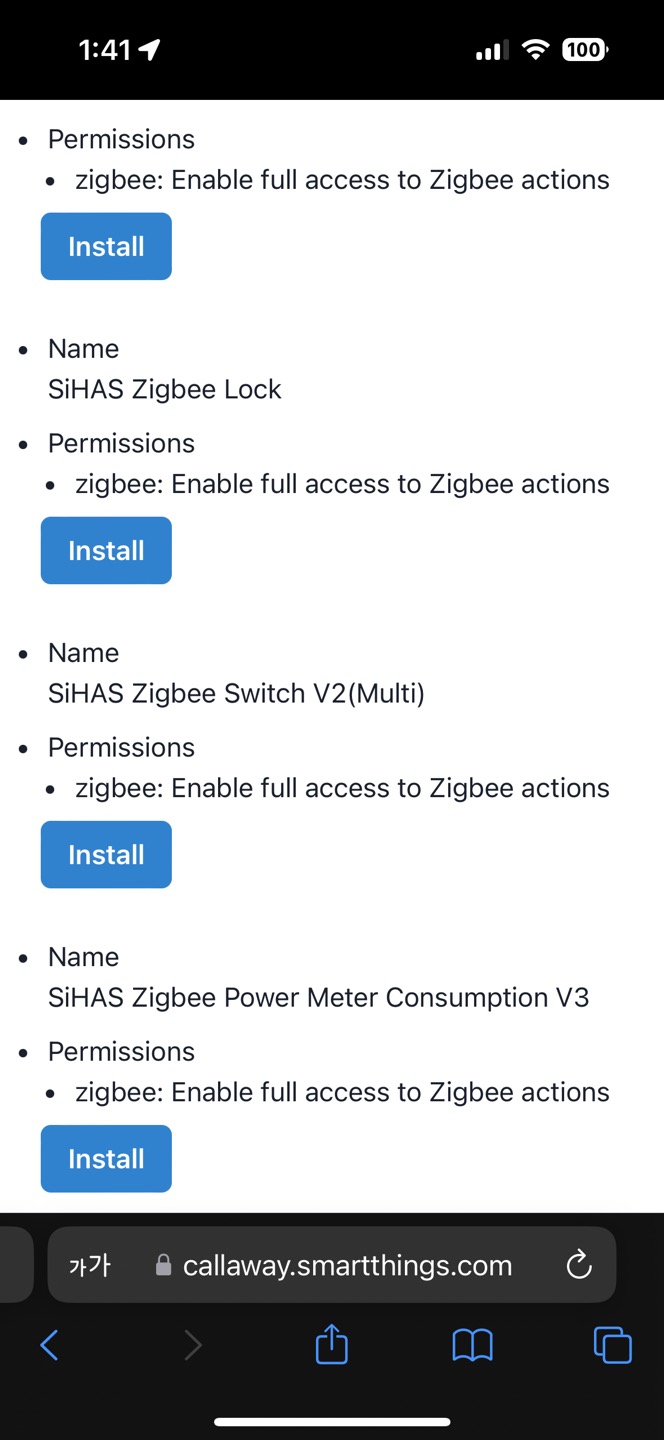 만약 기본 제공하지 않는 센서류를 등록하려면 별도 드라이버를 허브에 설치해주어야 한다.