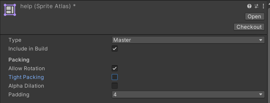 Sprite Atlas 인스펙터의 Tight Packing를 체크해제하면 해결된다.