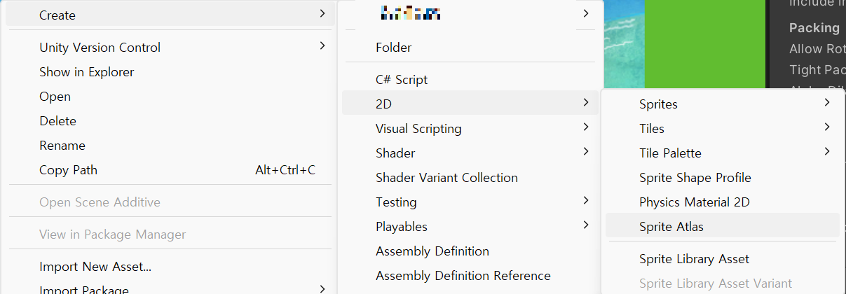 Create - 2D - Sprite Atlas 선택