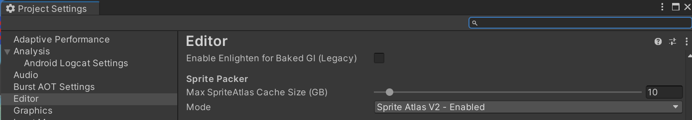 Project Settings - Editor - Sprite Packer - Mode를