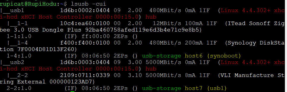 나스에 SSH로 접속하여 USB 정보를 확인한다.