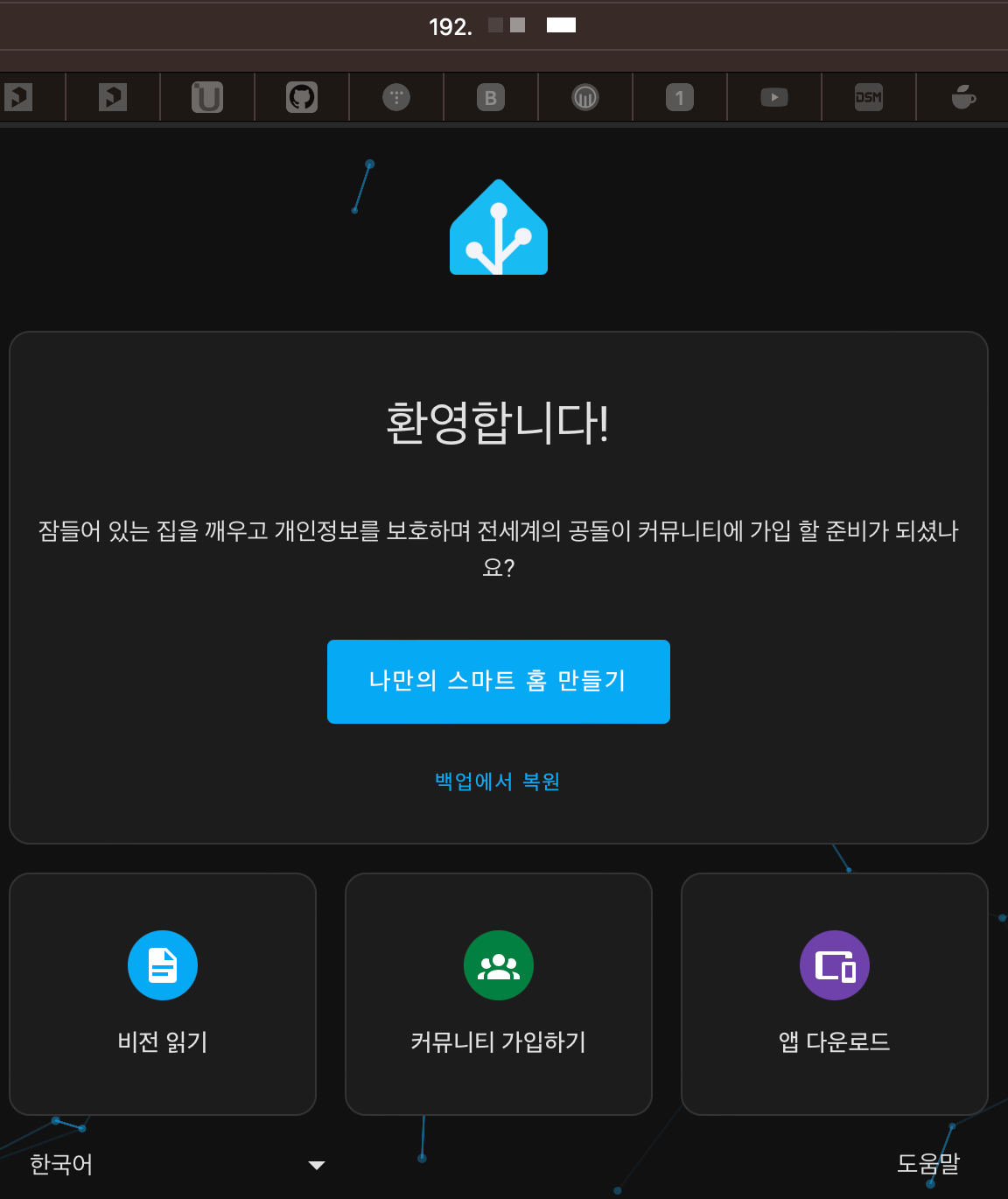 웹브라우저에서 NAS IP: 8123 으로 접속