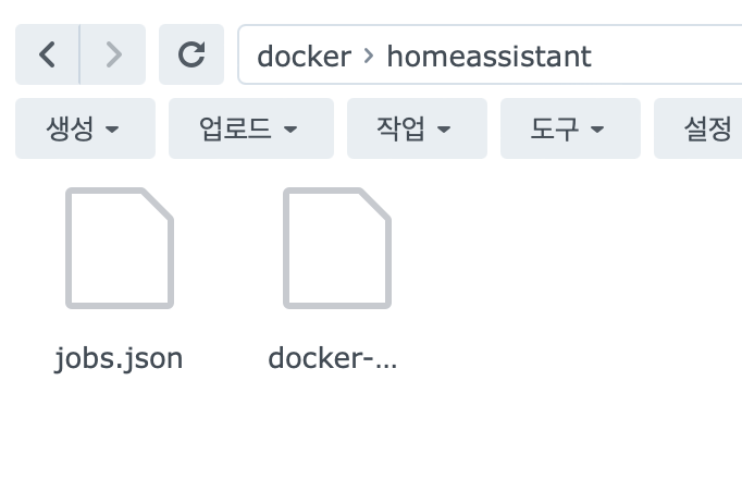 docker/homeassistant 폴더를 만들어주고 첨부 파일 두개를 넣어준다.