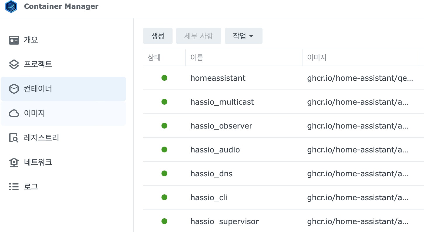 시놀로지 NAS Docker에 애드온 사용 가능한 HA(Home Assistant) 설치 하기