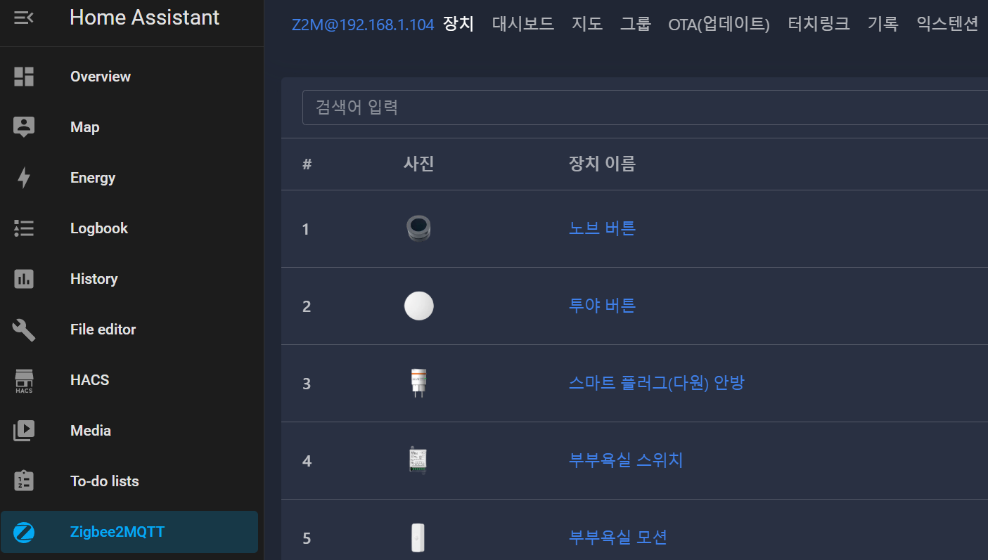 (장치 이름: home assistant)