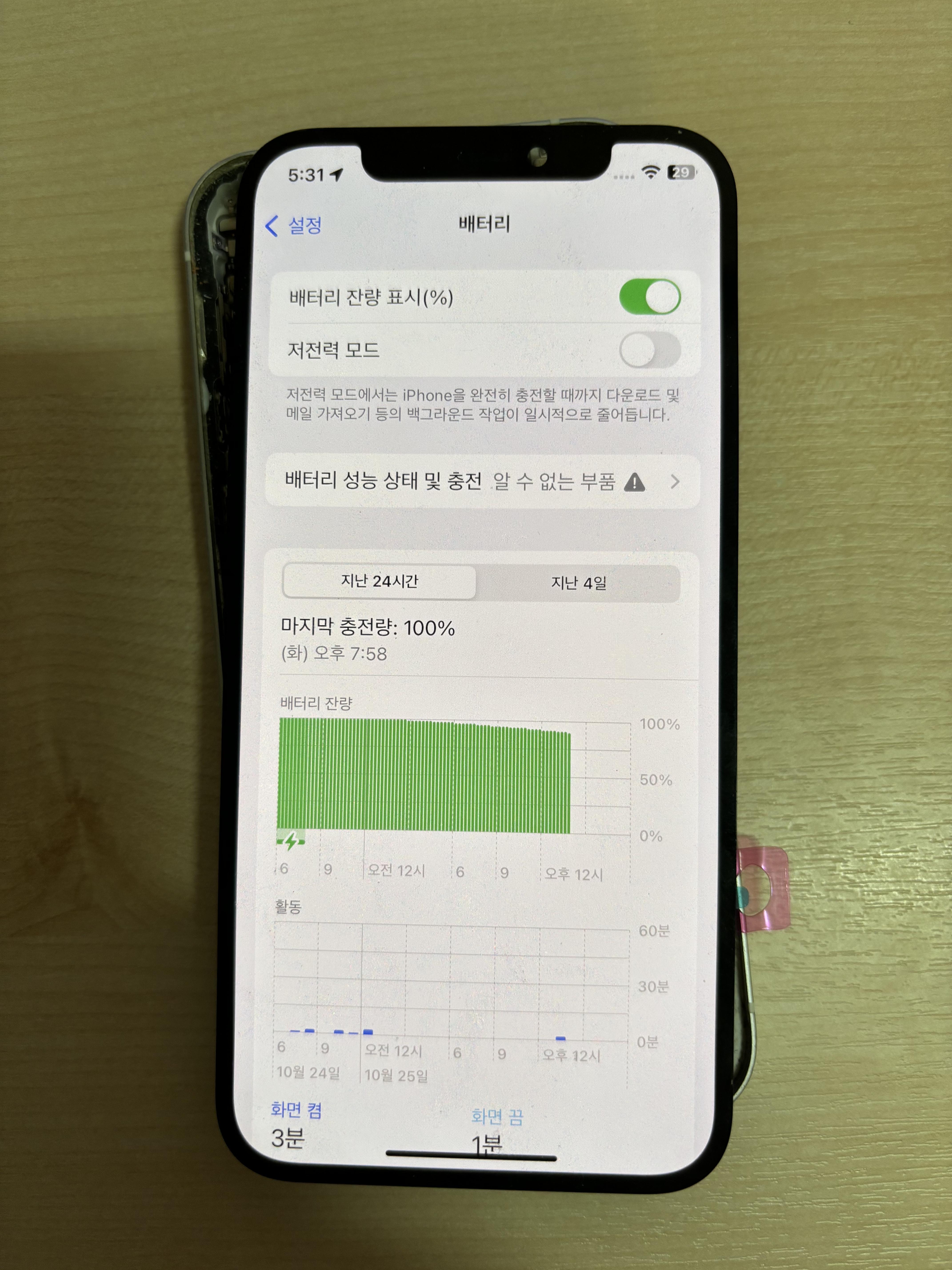 배터리 성능 상태가 72%라서 하루도 안 가는 배터리로 인해
