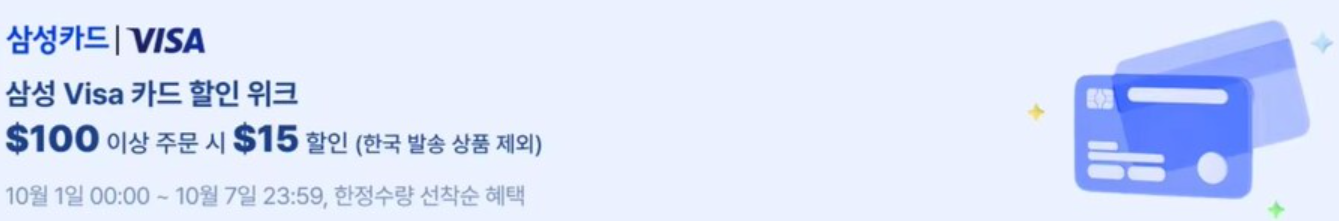 - 100달러 이상 구매 시, 15달러 즉시 할인