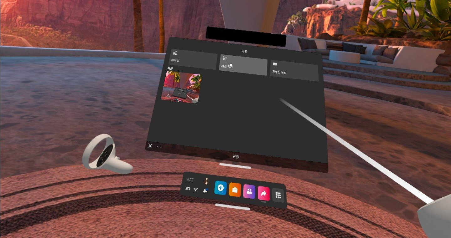 오큘러스 퀘스트 2에서 스크린샷을 찍는 방법은 두가지입니다.