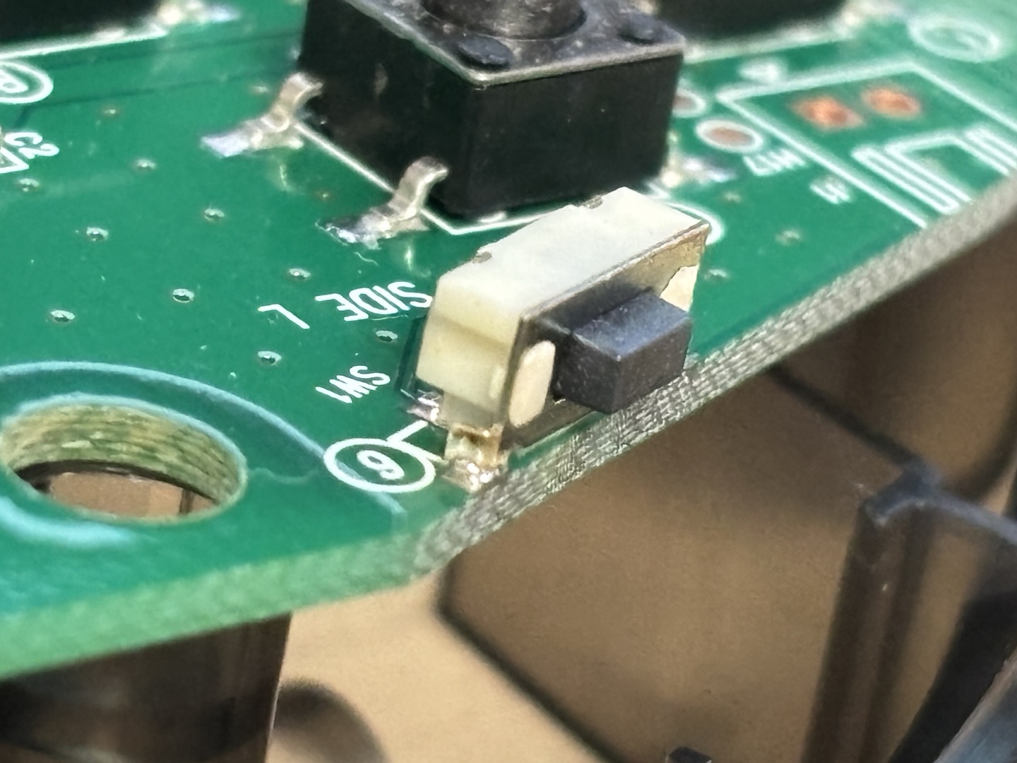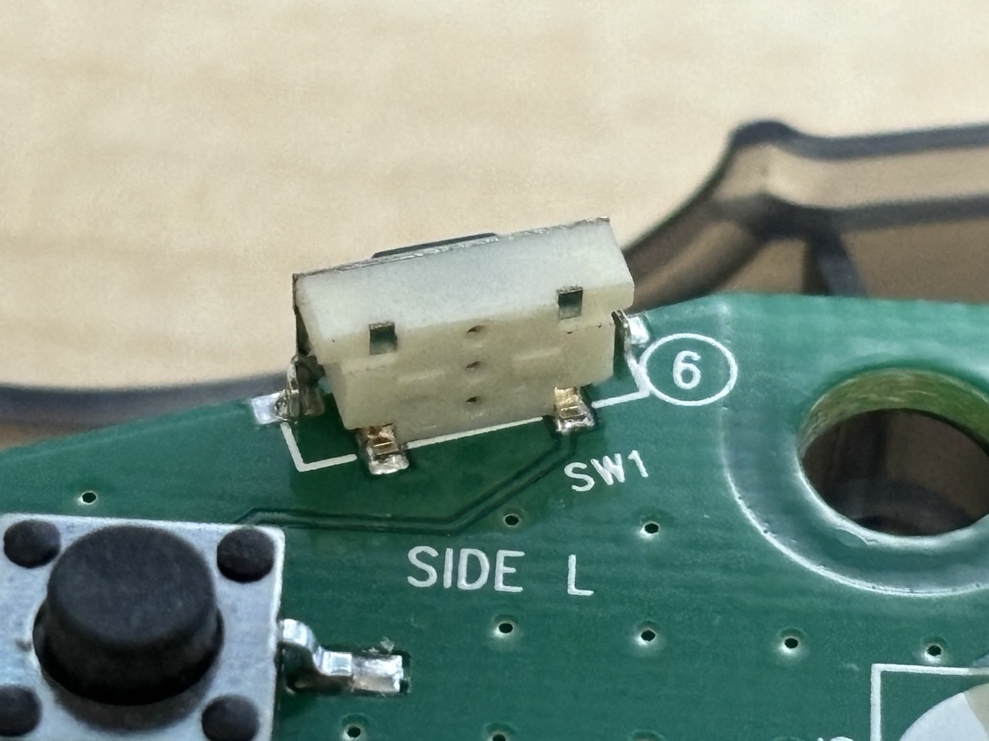 그리고 왼쪽 스위치 버튼을 참고해서 납땜을 해줬다.