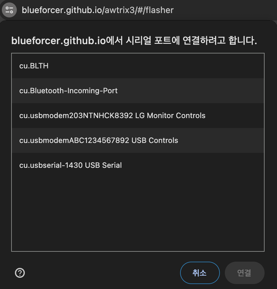 새로운 디바이스 AWTRIX가 발견되었다는 팝업이 뜨고