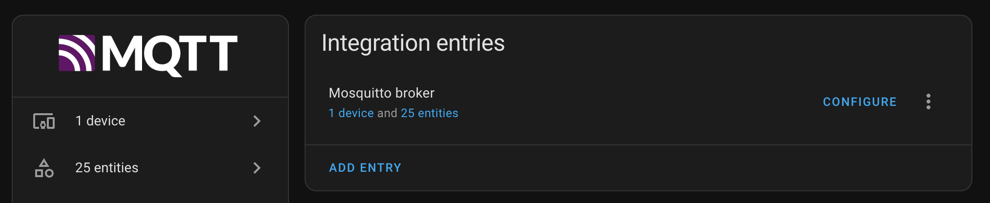 Home Assistants setting - Devices & services - Integerations에서 mqtt - CONFIGURE 클릭