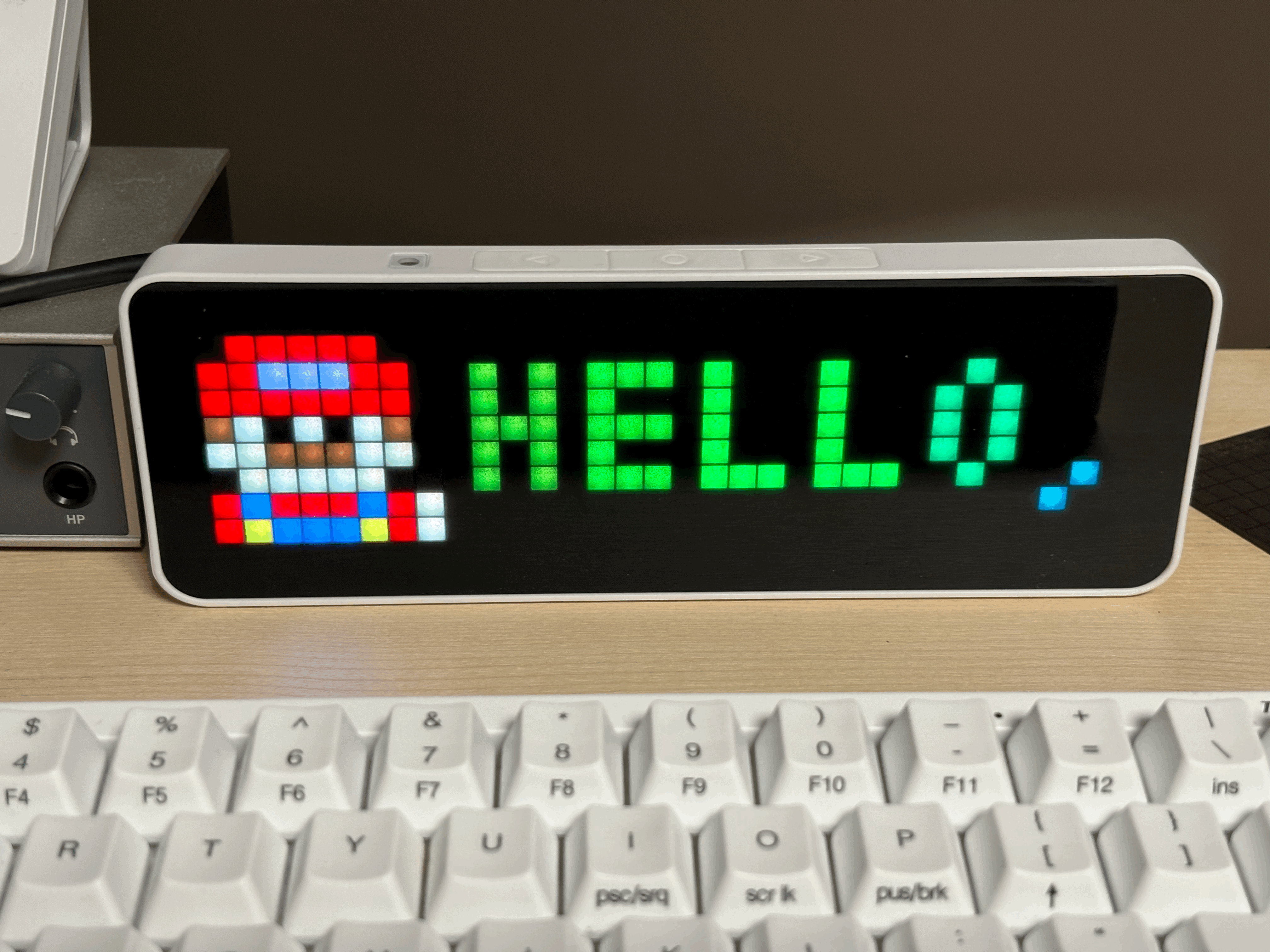 픽셀 디스플레이 화면에 바로 해당 문자가 레인보우 컬러로 10초간 이동하는 걸 볼 수 있다.