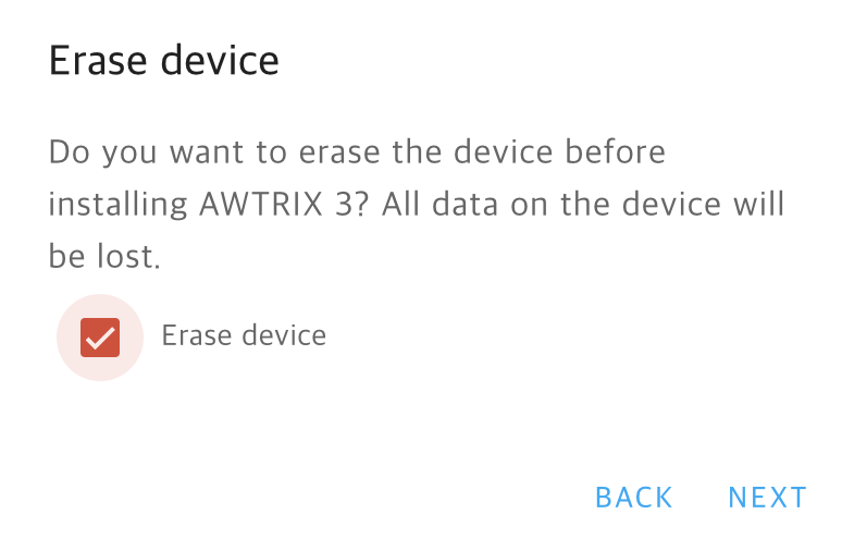 Erase device 체크 후 NEXT - INSTALL 클릭
