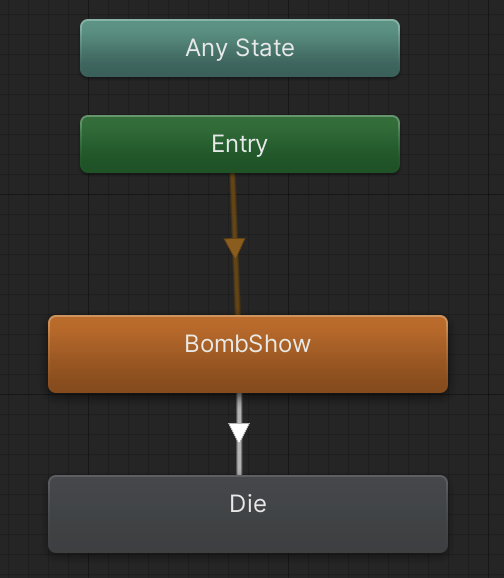 OnStateExit 함수를 오버라이드한다면 BombSHow State에 DieBehavior 컴포넌트를 추가해준다.