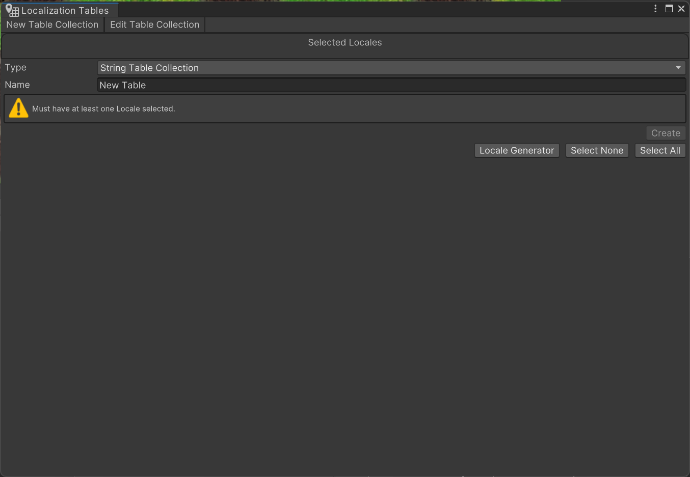 테이블 Name를 원하는 이름으로 변경해주고 Create 버튼 클릭 후 Localization 폴더 선택