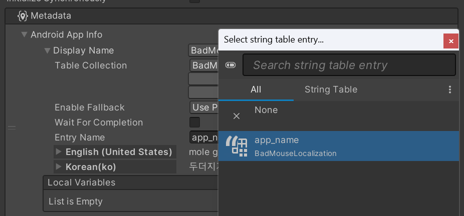 유니티 앱 이름 다국어(지역화, 국제화) 처리하기