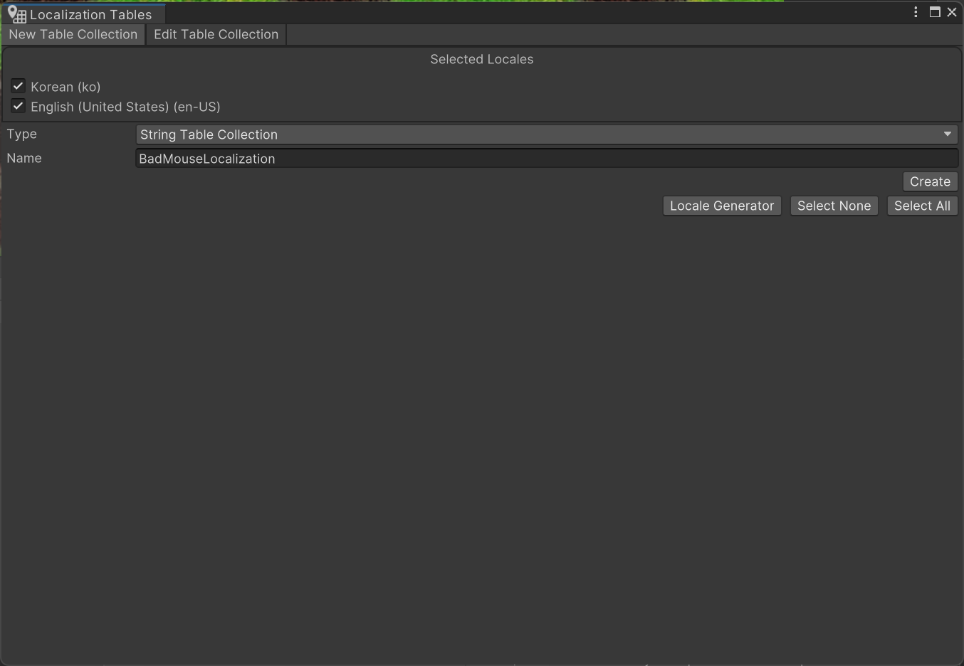 Localization 폴더를 하나 만들어주고 Localizion Settings.asset를 해당 폴더에 저장한다.