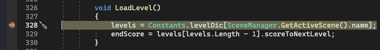 게임에서 비주얼 스튜디오에 걸어둔 중단점에 해당하는 코드 라인이 실행될 때
