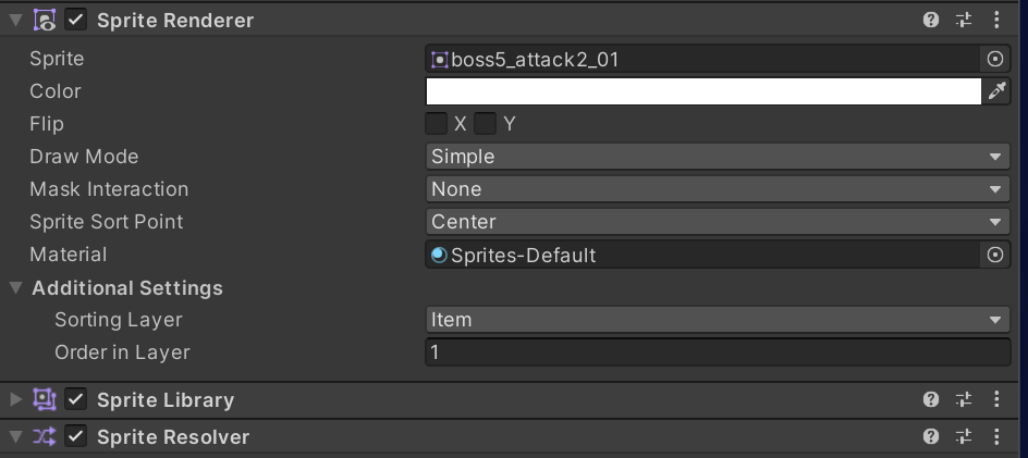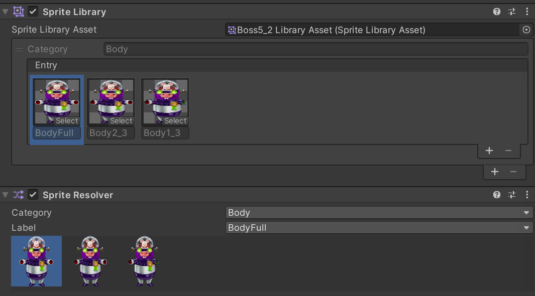 Sprite Library, Sprite Resolver가 포함된 GameObject를 삭제하고 새로 만들어서 적용해본다.