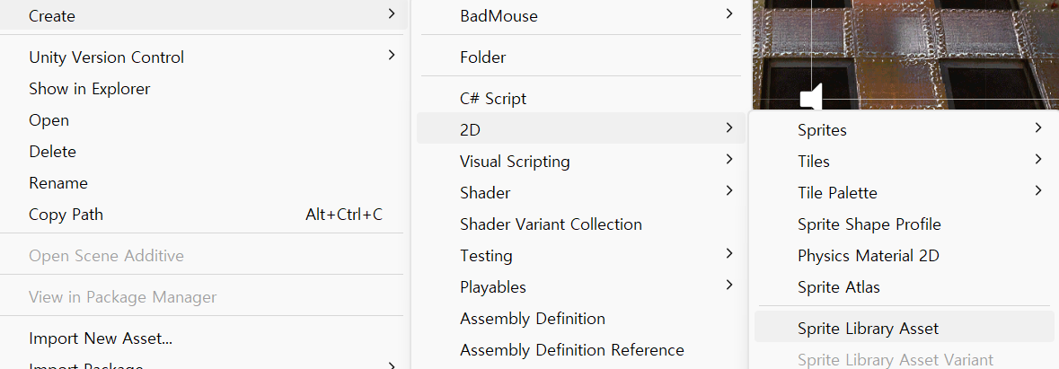 Asset 폴더에 Sprite Labrary Asset 파일을 생성한다.