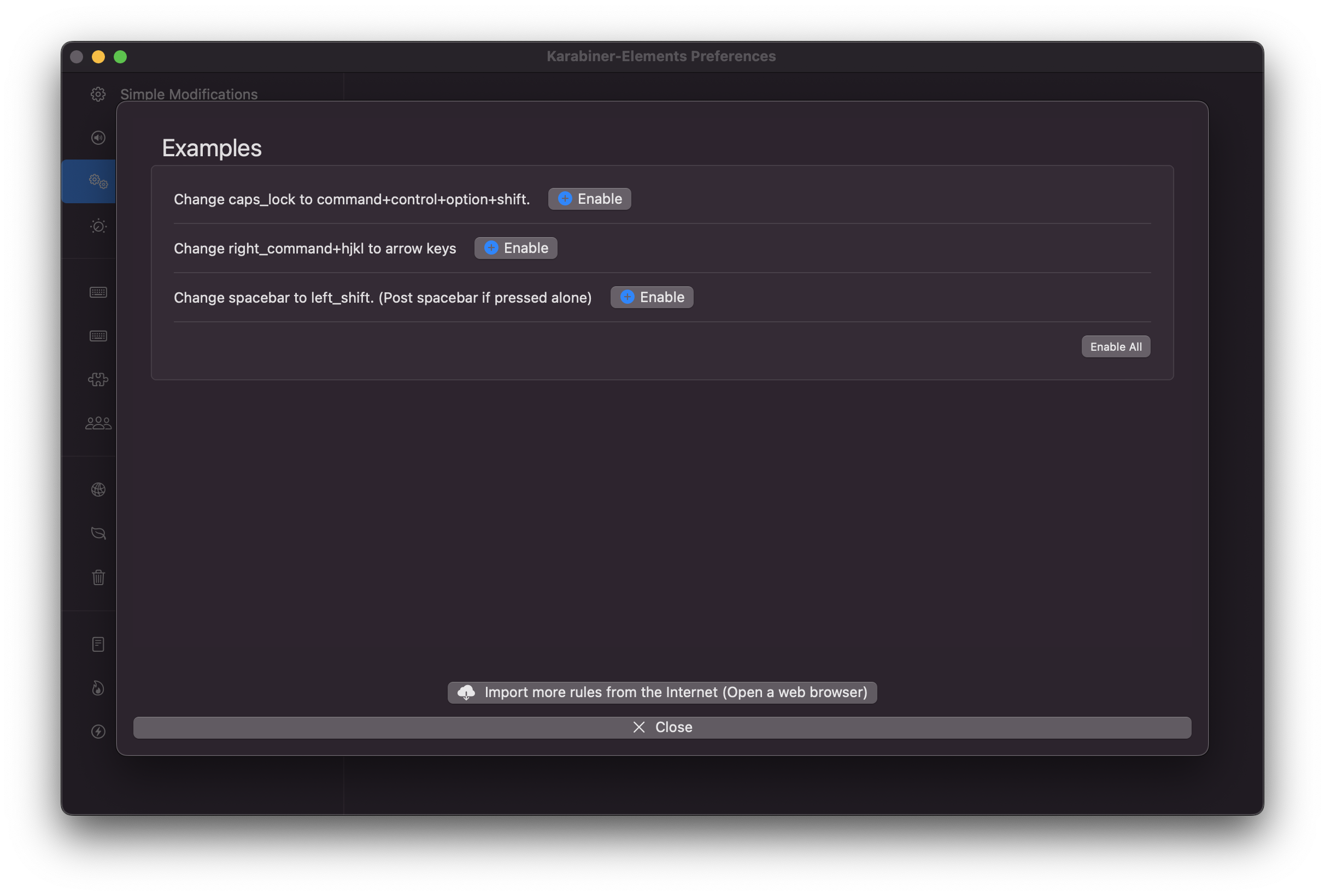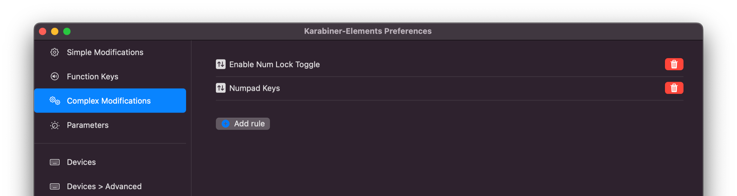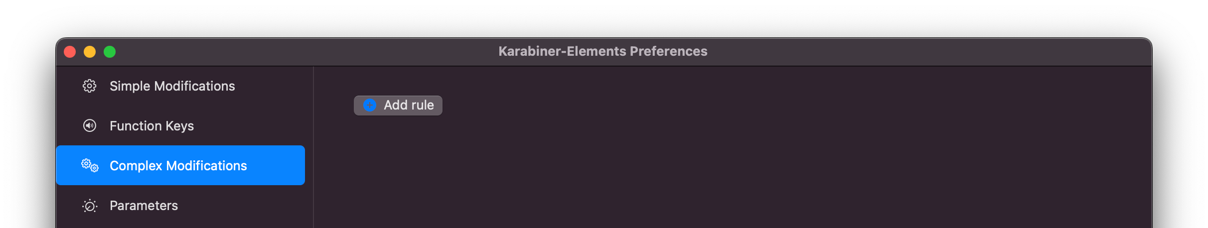 Karabiner 앱의 Complex Modifications 메뉴를 선택하고 Add rule 버튼 클릭