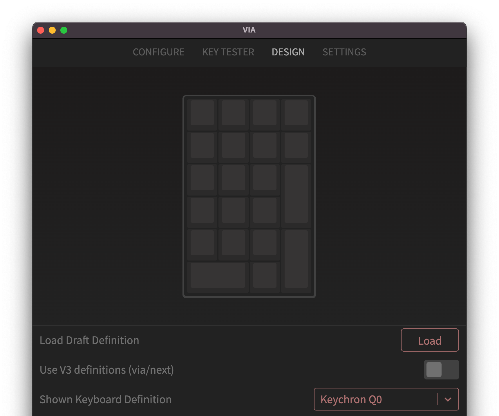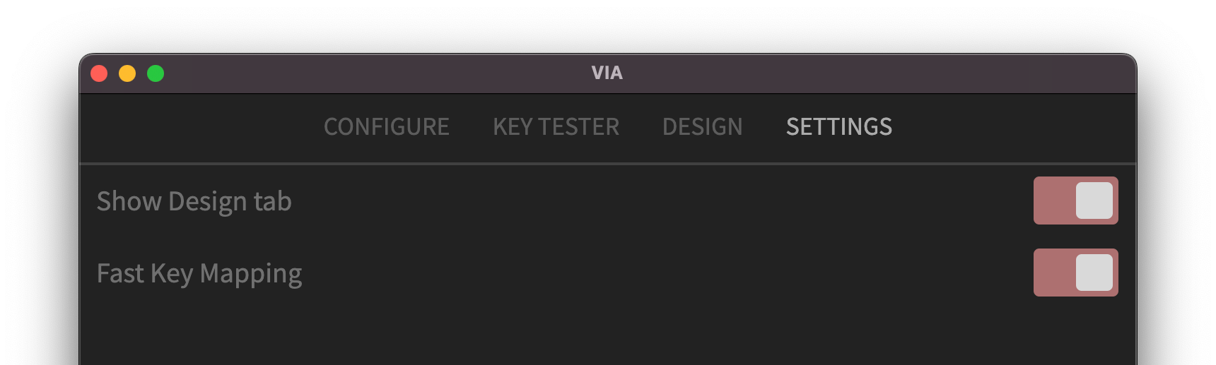 VIA앱의 SETTINGS 에서 Show Design Tab를 켜줍니다.