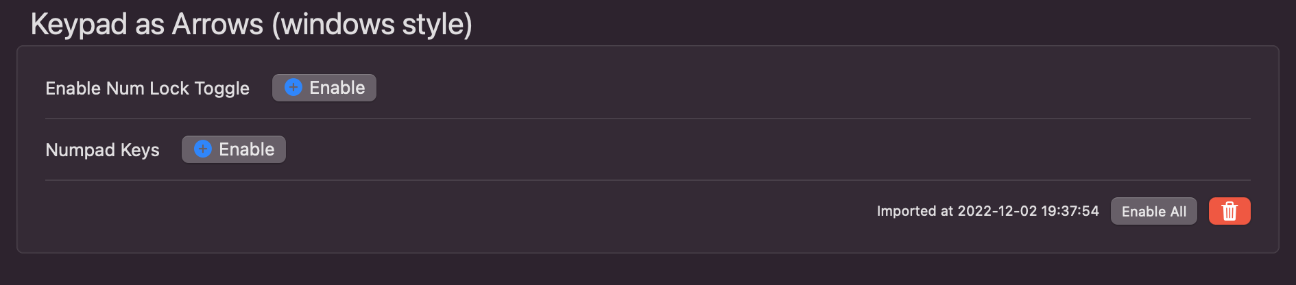 Keypad as Arrows(Windows style) 항목 Implort 버튼 클릭