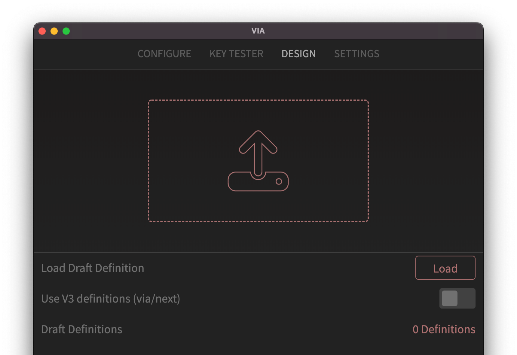 VIA앱의 SETTINGS 에서 Show Design Tab를 켜줍니다.