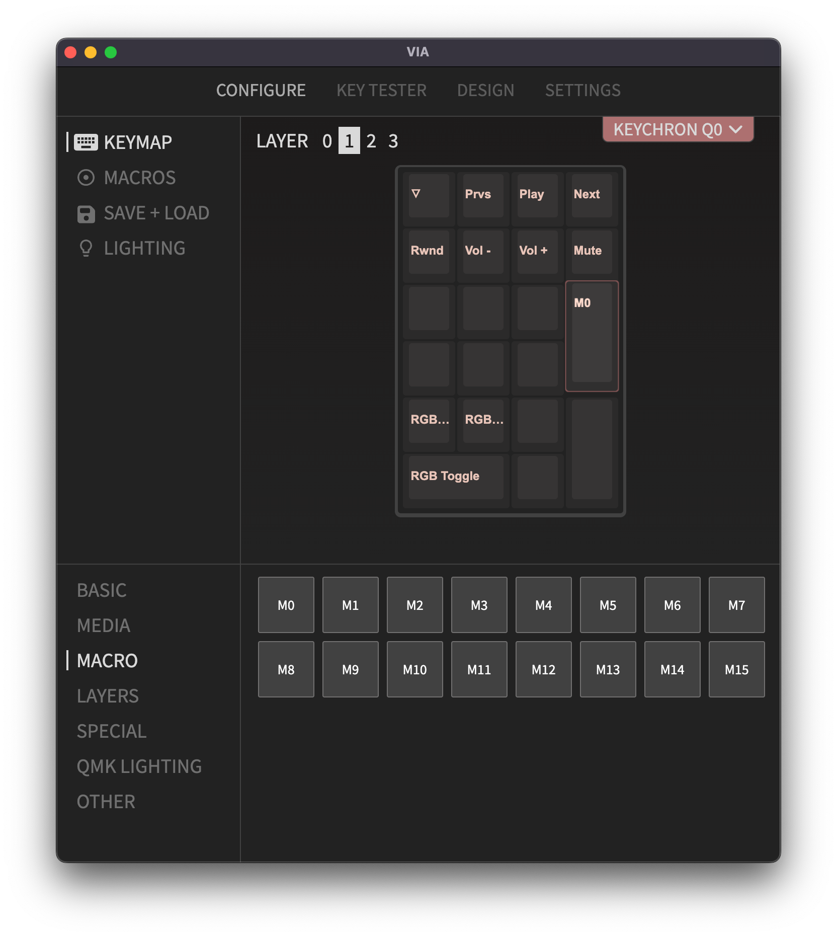 KEYMAP에서 M0(MACRO0) 값을 매핑할 수 있습니다.