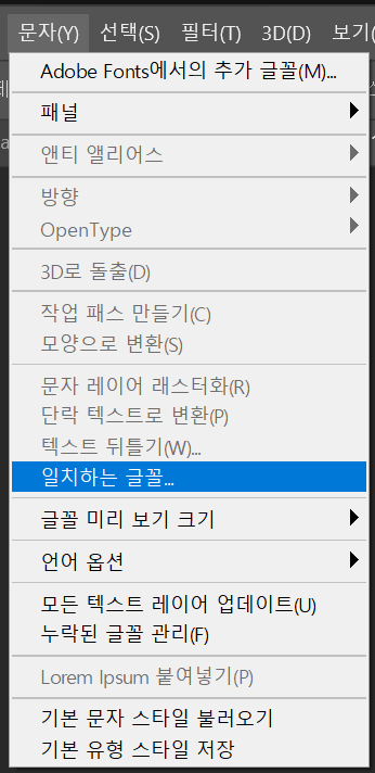 포토샵에서 이미지 텍스트로 폰트 찾기