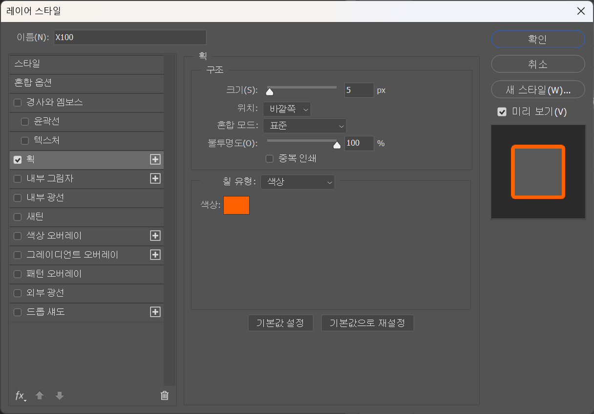 레이어에 획 효과가 추가된 것을 볼 수 있다.